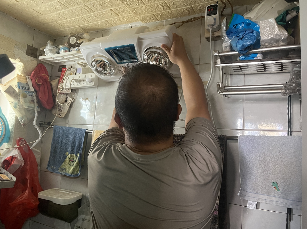 老刘是社区低保户,因肢体残疾常年无法自行站立起身,家里那台老旧热水器更是“添乱”:水温忽冷忽热不说,拧开关得费老大劲。高温天里洗次澡,他得扶着墙角的木板凳挪来挪去,折腾近一个小时,洗完浑身汗湿,比没洗还累。
