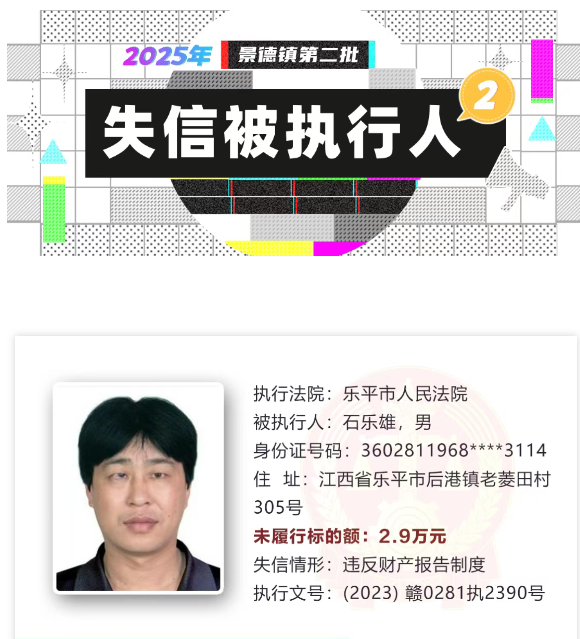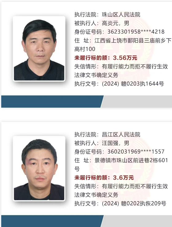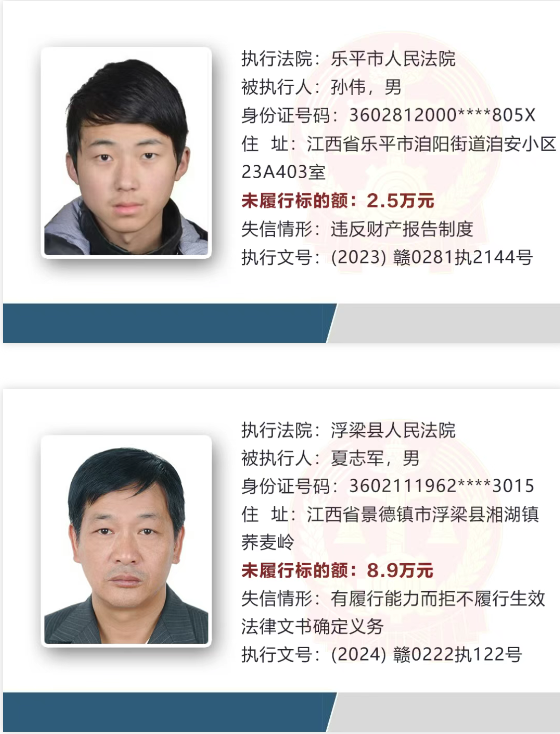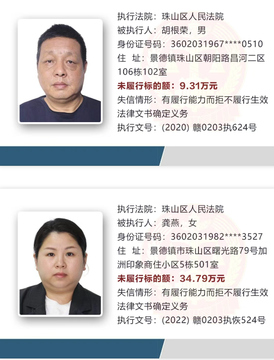 景德镇失信被执行人曝光