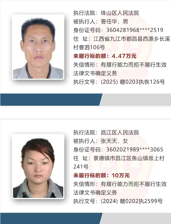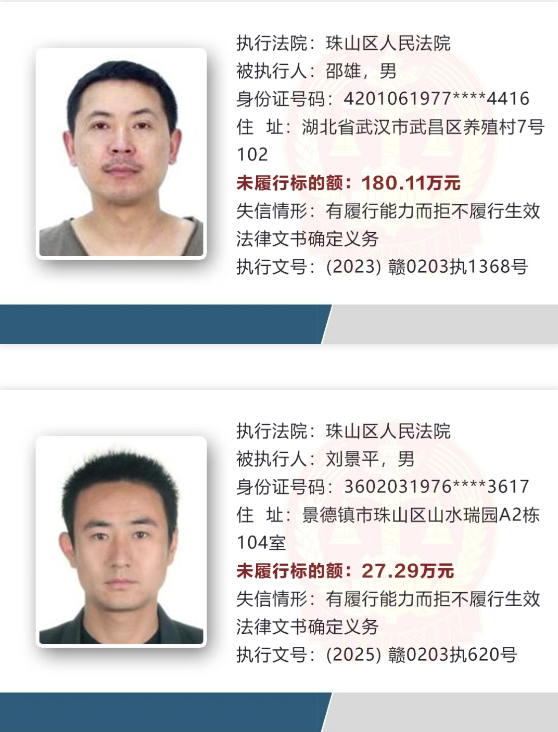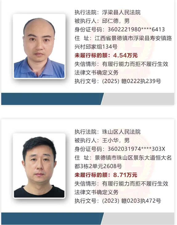 景德镇最新失信被执行人名单公布
