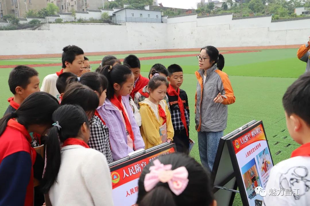 随后,学生们还观看了人民防空知识展板,工作人员还为学生们发放了相关知识小手册、文具等。