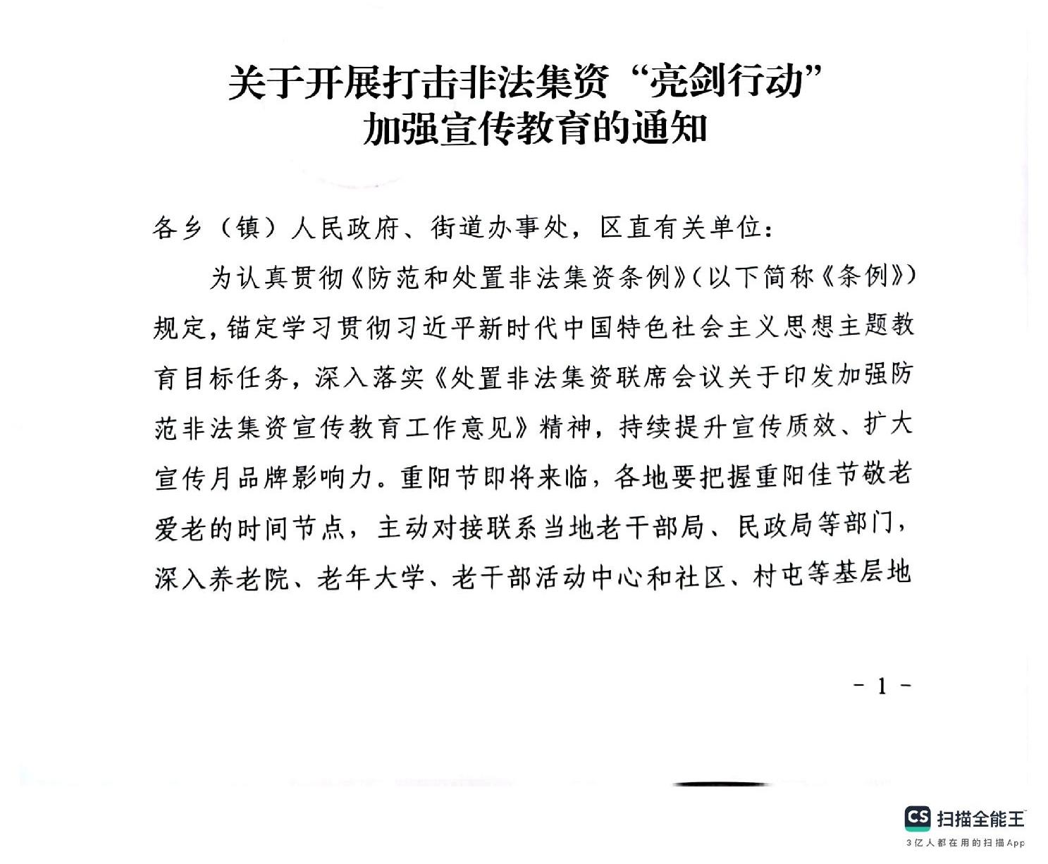 关于开展打击非法集资“亮剑行动”加强宣传教育的通知