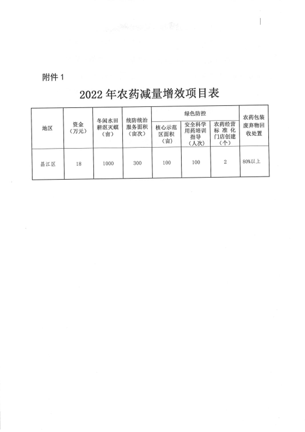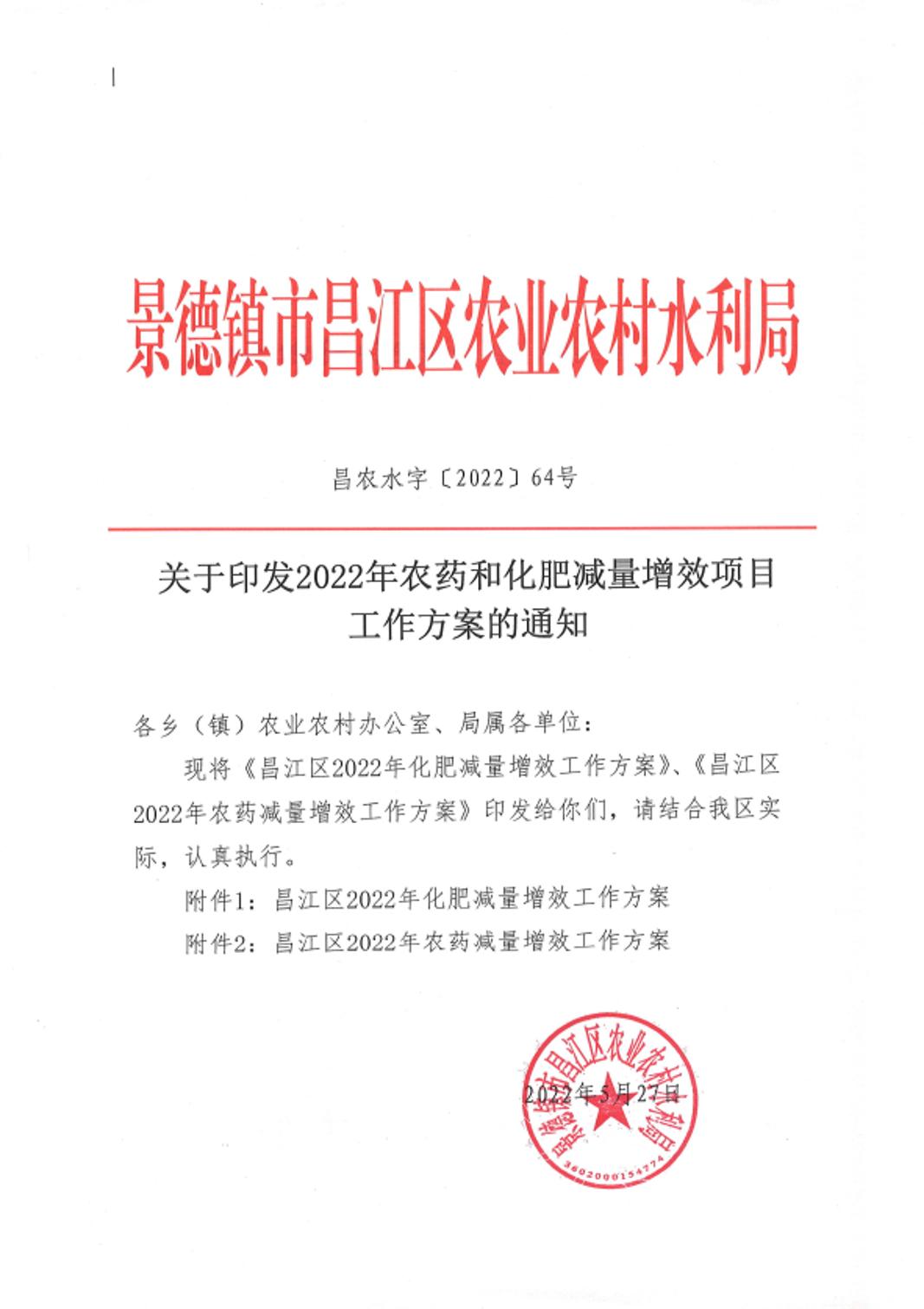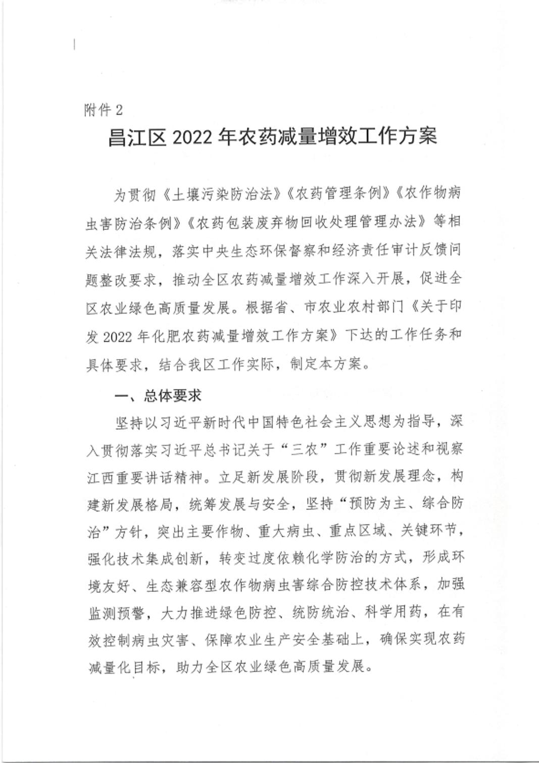 昌江区2022年农药和化肥减量增效工作方案