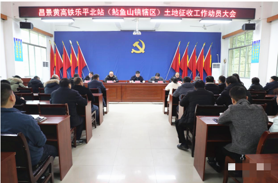 2月25日,昌景黄高铁乐平北站(鲇鱼山镇辖区)土地征收工作动员大会在鲇鱼山镇召开,昌江区副区长汪维,区人大常委会委员、人大财经委主任侯志军,鲇鱼山镇党委书记舒天才,党委副书记、镇长彭清丽,副科级以上干部,新柳村委会干部及相关人员参加会议,会议由彭清丽主持。