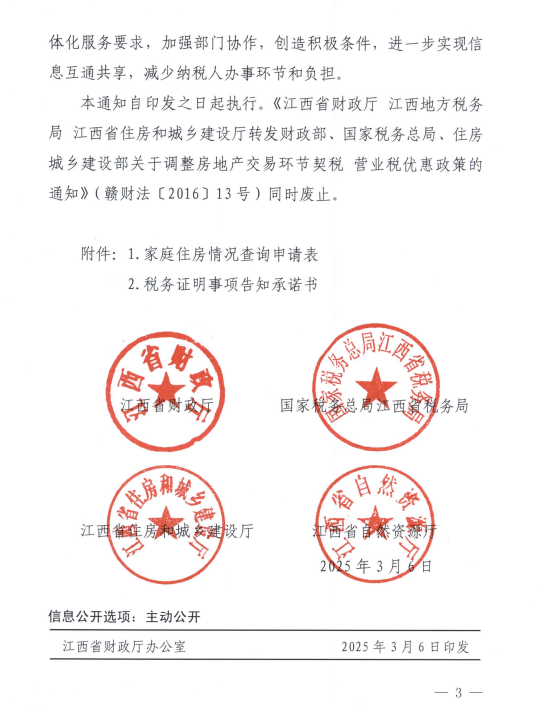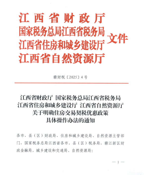 江西省财政厅 国家税务总局江西省税务局 江西省住房和城乡建设厅 江西省自然资源厅关于明确住房交易契税优惠政策具体操作办法的通知