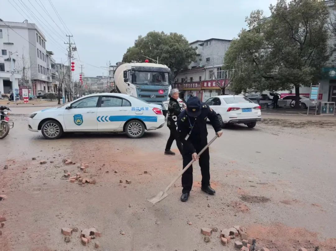 中队执法人员立即行动起来,对现场道路碎砖,石块进行清理,同时提醒过往车辆减速慢行,通过半个多小时的努力,终于将抛洒的砖块清理干净,道路恢复了正常通行。