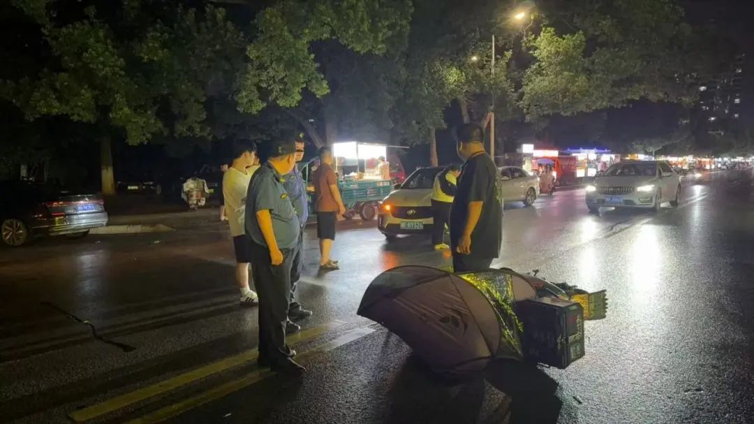8 月 1 日 23 时,夜色正浓,昌江区城管局三中队的夜班执法人员在景泰路康家花园夜市巡查时,一场突发情况打破了夜晚的平静 .... 一辆电瓶车与汽车发生剐蹭侧滑在马路中线,过往车辆因此通行缓慢,潜藏着极大的安全隐患。见状,夜巡队员没有丝毫迟疑,立即快步上前,合力安抚受伤人员和引导车辆缓慢通行,及时消除了险情,保障了道路的安全畅通,让夜市周边的 “烟火气” 在安全的氛围中继续升腾。