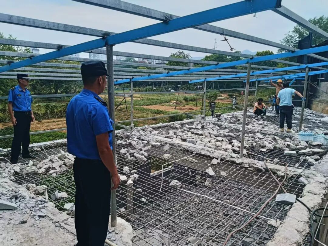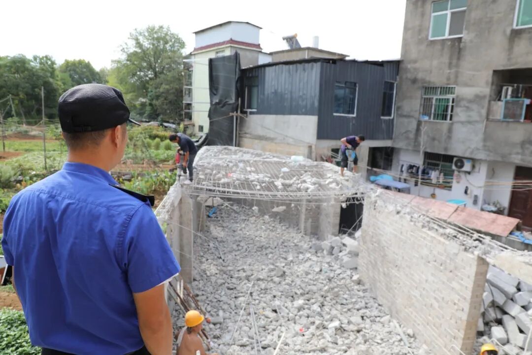为快速推进违建整治工作,及时消除安全隐患,前期,中队秉持快拆快打的工作原则,主动约谈违建当事人,就违建行为及其可能带来的安全隐患进行详细说明,并依法发放整改告知书,明确整改责任,要求当事人在限期内自行拆除违建。