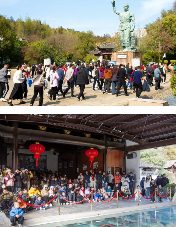 这个假期,景德镇古窑民俗博览区人声鼎沸、热闹非凡,“人人加柴 家家财旺”主题活动持续点燃无数游客的新年热忱。手工制瓷作坊内早已人气爆棚,每一位非遗代表性传承人的工作台前都围拢着密不透风的人墙,后来的游客纷纷踮起脚尖、伸长脖颈,只为一睹传承人手中华丽瓷艺的诞生。在全国重点文物保护单位——镇窑前,游客排起的长龙蜿蜒不绝,大家有序等候,沉浸式感受千年窑火的历史厚重。景区精心打造的“红色瓷路”上,游客们驻足凝视、细细浏览,认真端详一件件承载红色记忆的陶瓷艺术品,在瓷韵中感悟红色精神;瓷乐表演现场座无虚席,身着青花瓷服饰的演奏人员指尖轻动,婉转悠扬的旋律缓缓流淌,尽显瓷都独有的文化韵味。