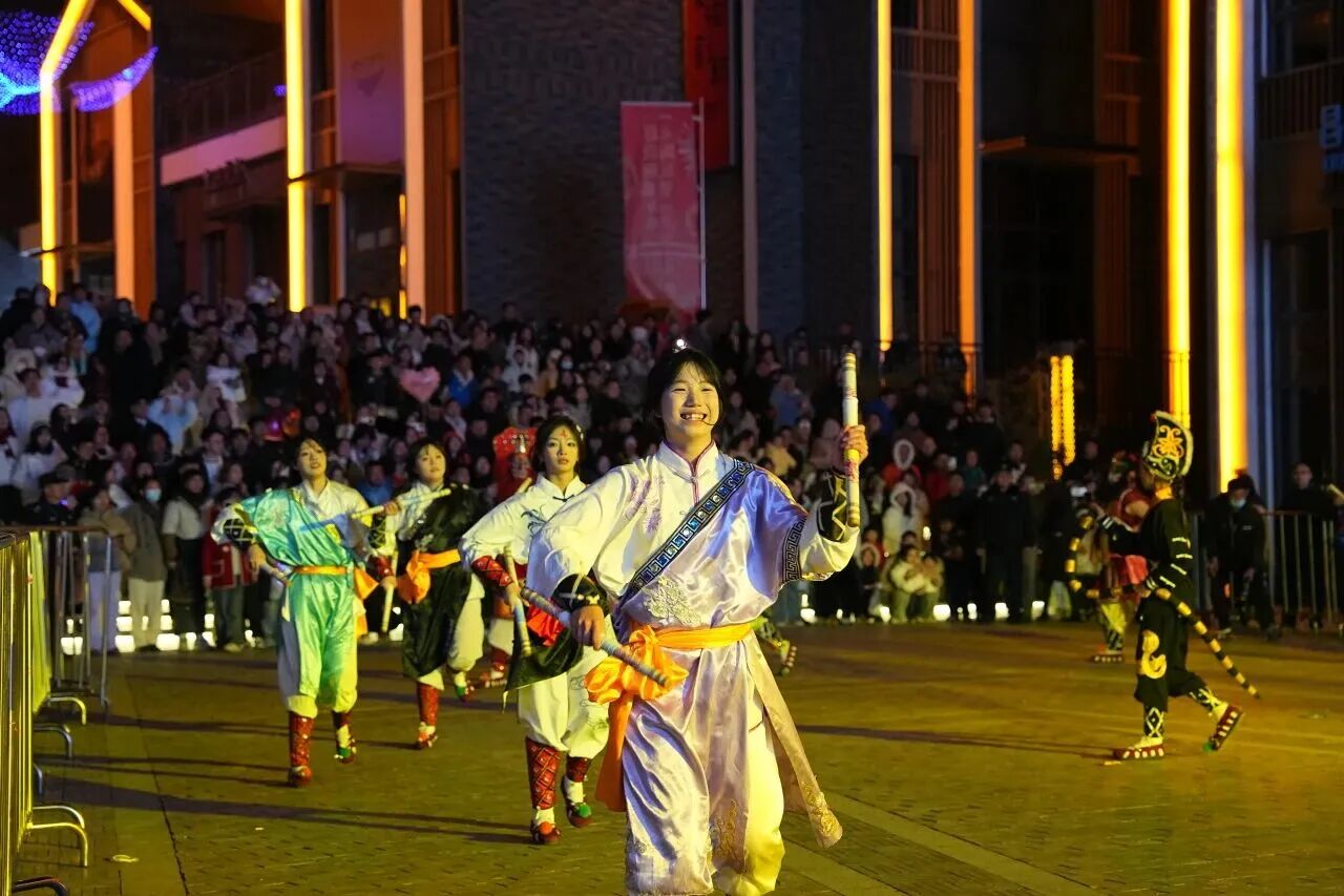 特色街区与休闲景点各放异彩,成为元旦出游的热门打卡地。三闾庙历史文化街区内热闹非凡,一场场精彩演出轮番上演:《抖空竹》的灵巧翻飞、《变脸吐火》的惊险刺激,让游客目不暇接、连声叫好;民谣演出《清街新年》用温柔旋律治愈人心,压轴大戏《龙灯巡游》更是气势恢宏,龙身蜿蜒舞动,灯火摇曳生辉,引得游客纷纷驻足拍照;夜间的《清街·雪夜》氛围秀浪漫十足,灯光与雪景交相辉映,让游客沉浸式感受冬日清街的独特韵味,流连忘返。