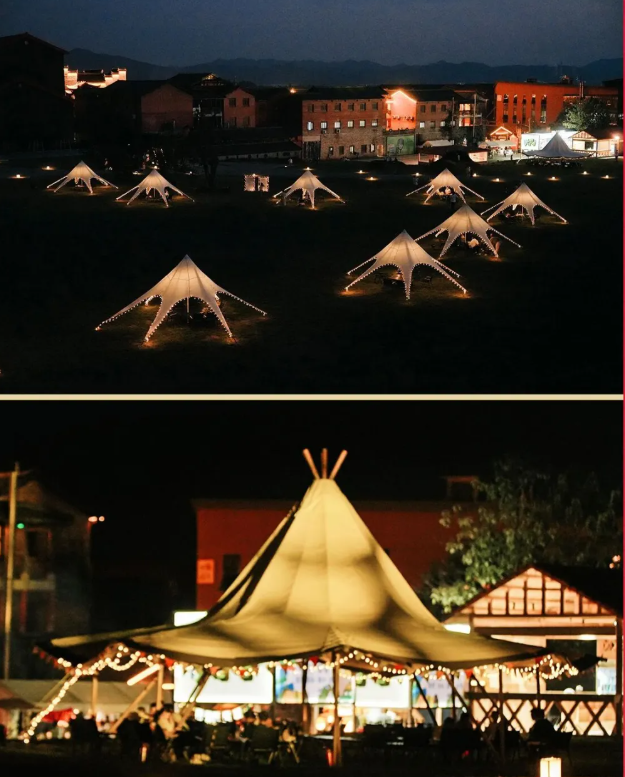 宁封窑的“搭火跨新年”活动则为游客带来了温馨惬意的跨年体验。围炉煮茶升腾起冬日独有的仪式感,好友围坐品茗聊天,惬意自在;羊汤火锅搭配现烤全羊,热气腾腾、香气扑鼻,暖心暖胃又丰盛满足。夜幕降临,篝火音乐准时开启,大家伴着旋律弹唱、起舞,尽情释放压力;投壶、猜谜、桌游等派对游戏接连登场,游客们踊跃参与、欢聚不散场,在欢声笑语中定格美好时光。