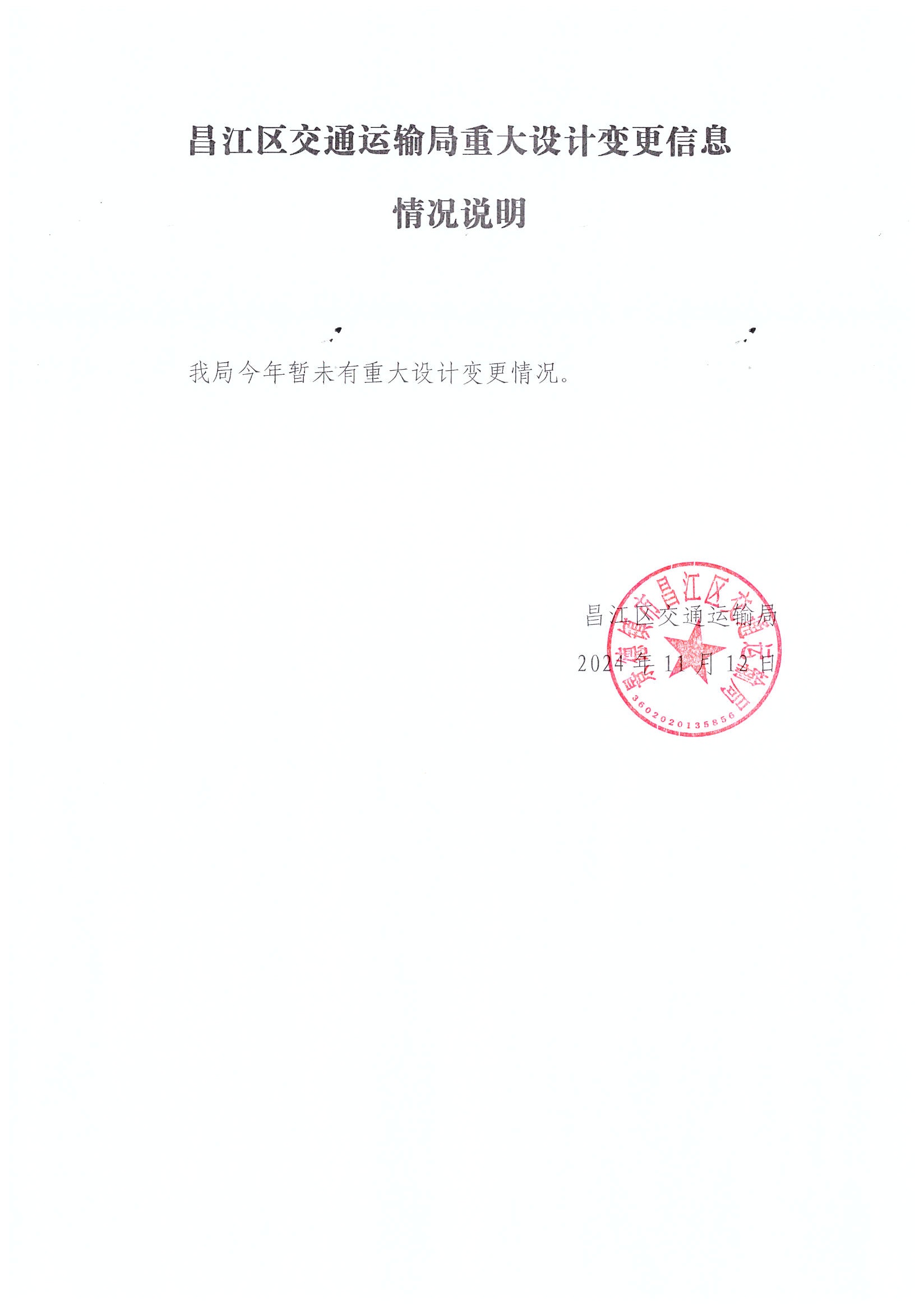 昌江区交通运输局重大设计变更信息情况说明