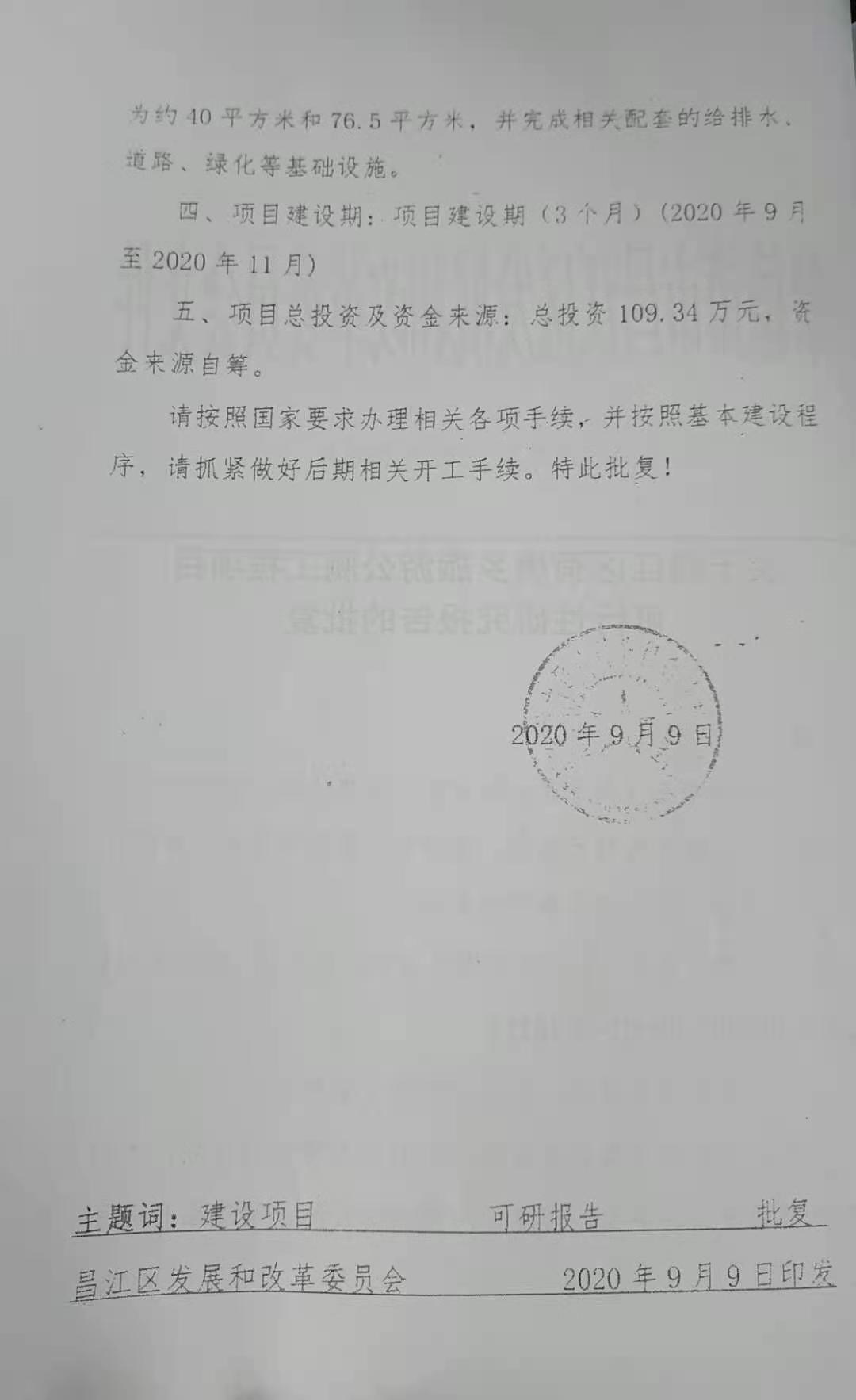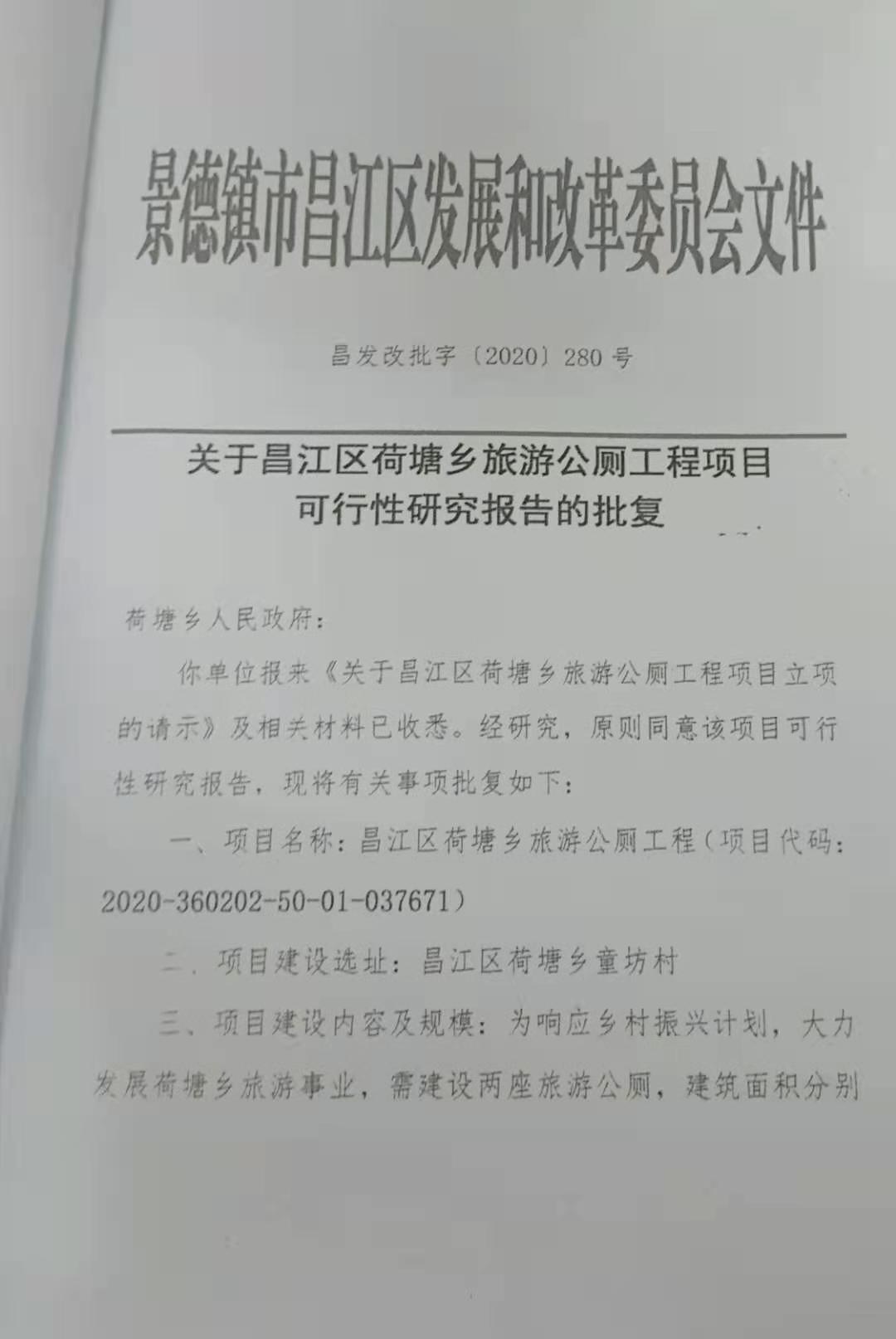 关于景德镇市昌江区荷塘乡旅游公厕工程项目可行性研究报告的批复