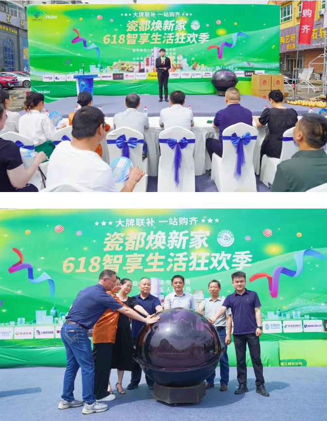 6月14日上午,由景德镇市商务局、昌江区人民政府指导,景德镇市新闻传媒集团主办的中国邮政储蓄银行“瓷都焕新家・618智享生活狂欢季”活动在昌江区豪德贸易广场启动。市融媒体中心主任、景德镇新闻传媒集团董事长冯亮,市商务局副局长程新裕,昌江区副区长梁毅等政企代表出席,并共同上台按下启动屏,宣布活动正式启动。