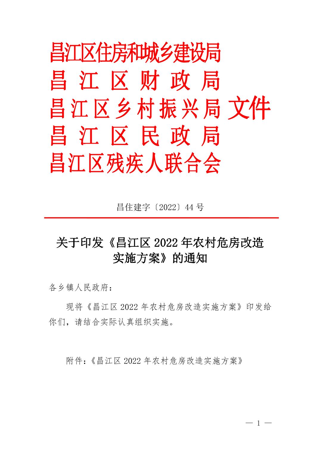 关于印发《昌江区2022年农村危房改造实施方案》的通知