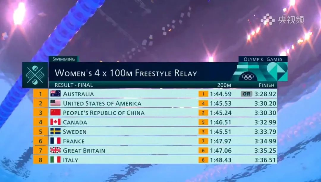 在今天凌晨进行的巴黎奥运会女子4×100米自由泳接力决赛,昌江姑娘程玉洁作为第二棒,和队友杨浚瑄、张雨霏、吴卿风代表中国队在第三泳道参赛。最终以3分30秒30的成绩,获得女子4x100米自由泳接力项目的铜牌,并打破亚洲纪录!这也是程玉洁第二次参加奥运会并首度夺得奥运会奖牌。