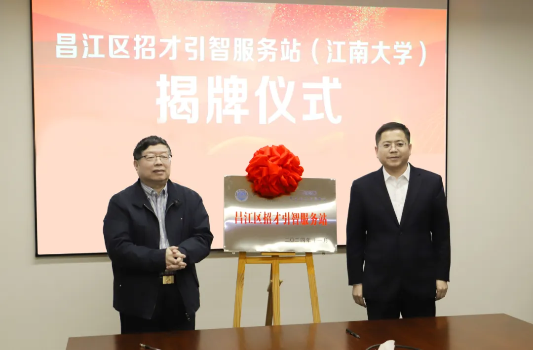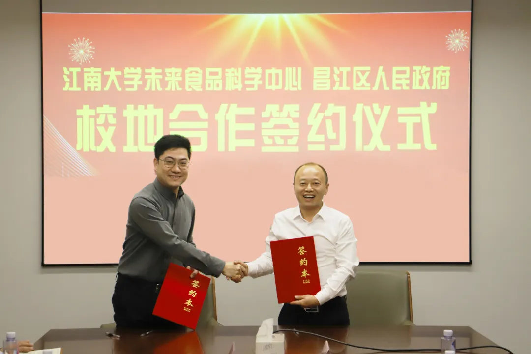 会上,陈坚与倪卫春为昌江区招才引智服务站揭牌;聂刚代表昌江区政府与江南大学未来食品科学中心签署校地合作协议。