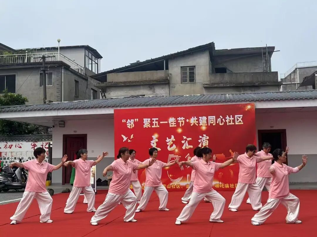 为丰富辖区群众的文化生活,党建引领社区治理文明新风尚,提升辖区居民的幸福感、获得感,增强邻里之间的友谊,提高社区的亲和力,哪吒庙社区、谭家山社区、韭菜园社区联合举办“‘邻’聚五一佳节 共建同心社区”文艺汇演活动。